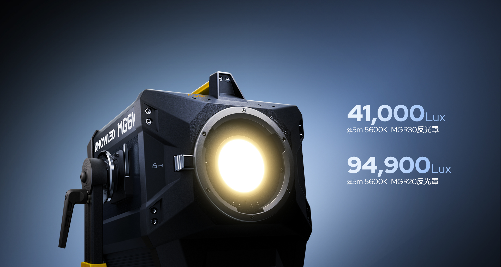 MG6K延续诺力LED专业影视灯高亮基因,以强悍功率带来高亮输出,亮度超越6K镝灯,无需预热,即开即亮。