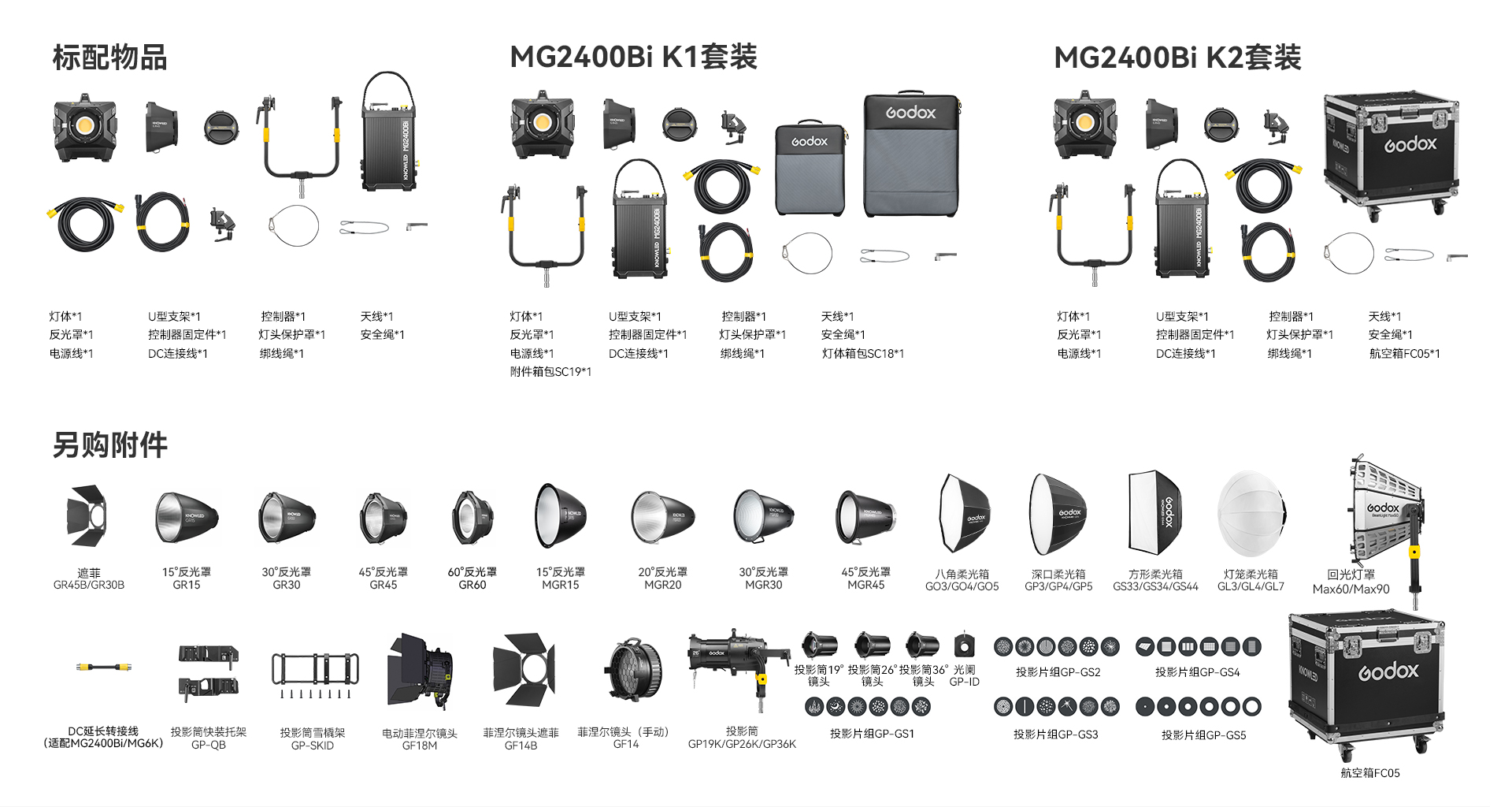 MG2400Bi拥有完善丰富的附件生态,且附件具有高温防火能力,不仅可实现精细塑光,更具备超高的安全性,带来细腻可靠的布光体验。