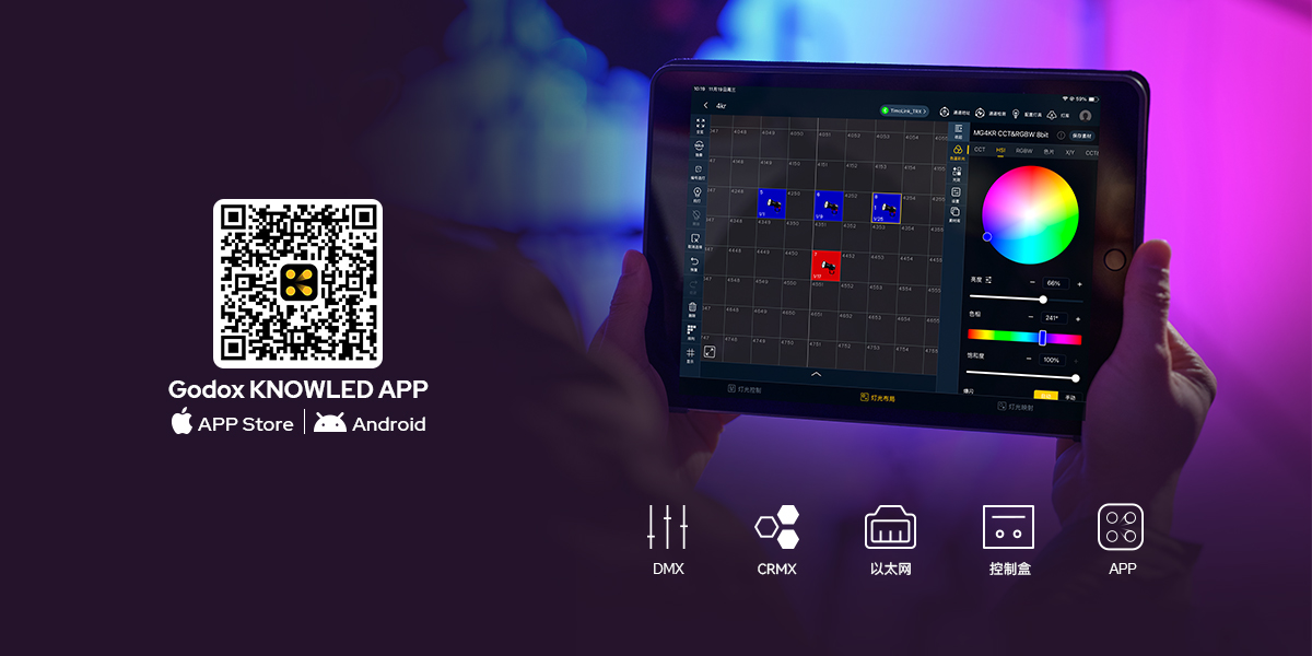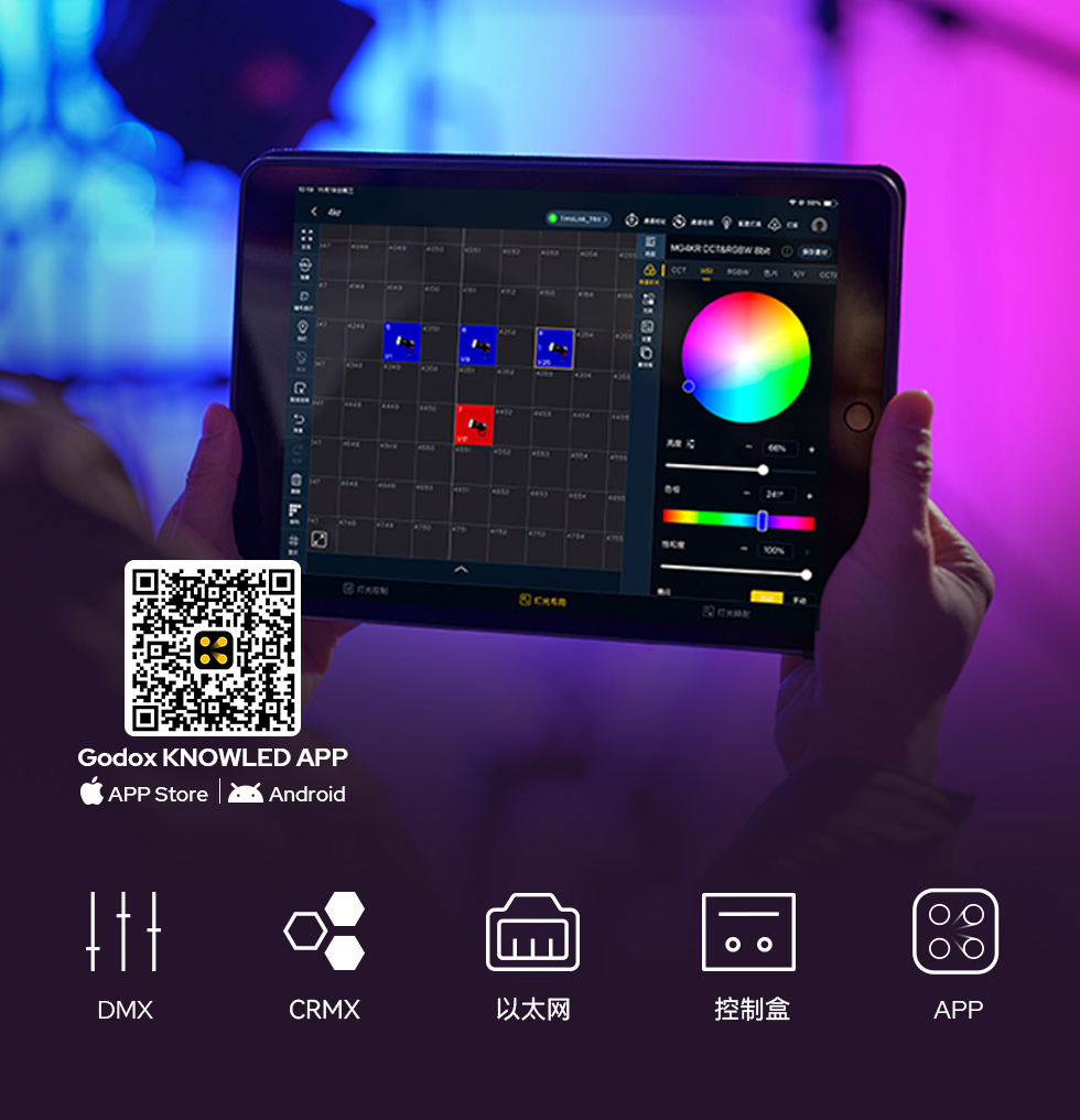 | 控制方式 | 无线或有线 DMX/RDM、CRMKX、以太网、蓝牙、控制器控制 |